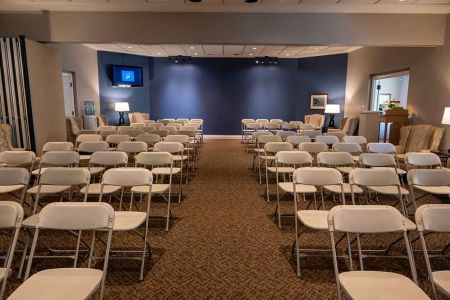 Our spacious foyer welcomes visitors with warmth, providing a place where family and friends can gather before the service begins.