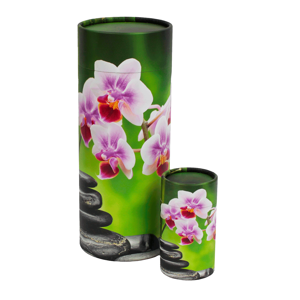 Environmental Cremation Urn / Scattering Tube Biodegradable Paper Green with Orchid and Pebble Design